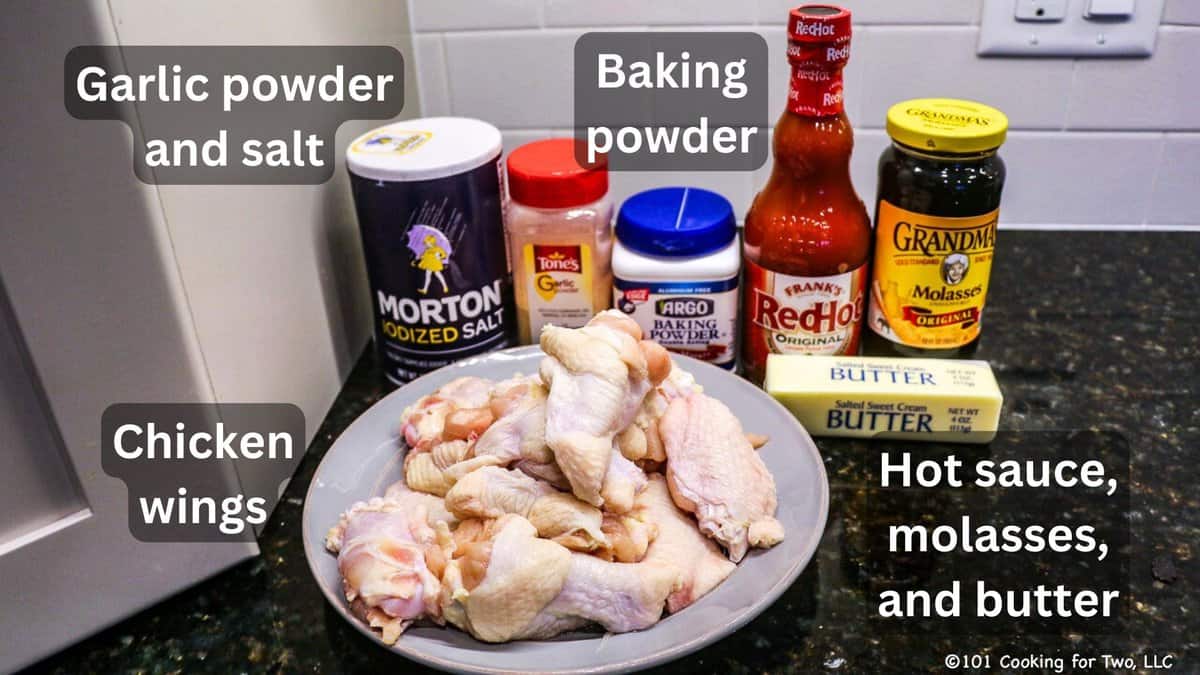 - Mix 1 tablespoon of aluminum-free baking powder ½ teaspoons of salt, and ½ teaspoons of garlic powder in a 1-gallon ziplock bag. Add chicken wings and shake well to coat.