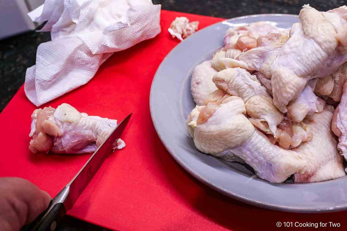 - Trim the joints for bone fragments. You may cut the wings apart, leave them whole, and just trim off the tips.