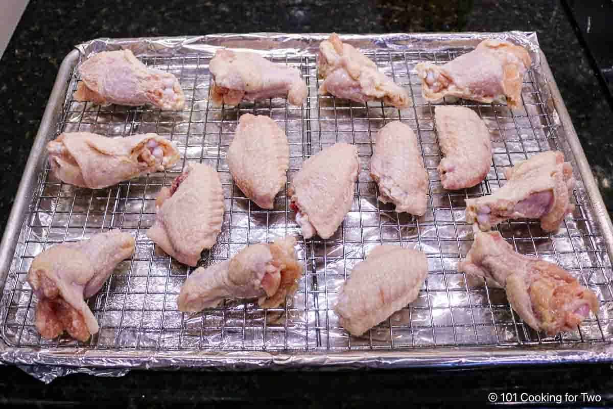 4. Arrange the wings on the tray and bake on a lower rack in a 250° conventional oven for 30 minutes.