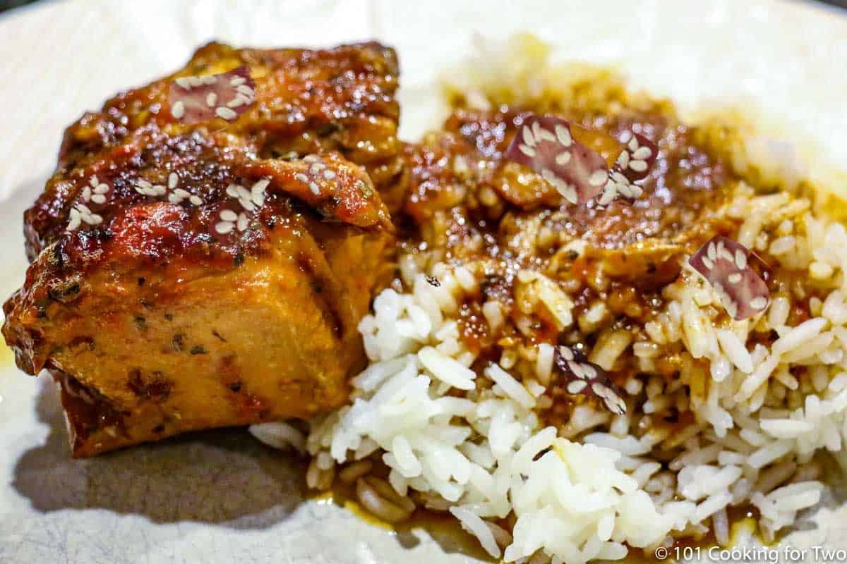 Serve this sweet and sticky chicken over cooked rice, cauliflower rice, or fried rice, and spoon plenty of sauce on top. A sprinkle of toasted sesame seeds and sliced green onions adds a fast finishing touch.