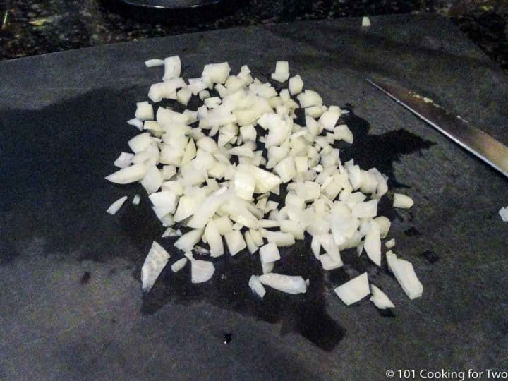- Prep a medium onion with a medium chop and one jalapeno pepper by mincing (optional.)